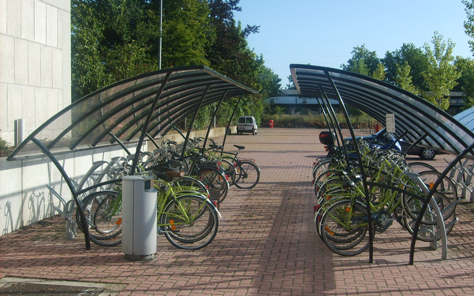 Cet abri universel pour vélos et motos convient, grâce à sa forme ouverte, à tous types d'environnements. L'abri Ligna offre plusieurs possibilités d'agencement et peut être agrandi facilement à l'aide de modules de base et d'ajout. Un système de rangement de vélos intégré fait également partie des possibilités.